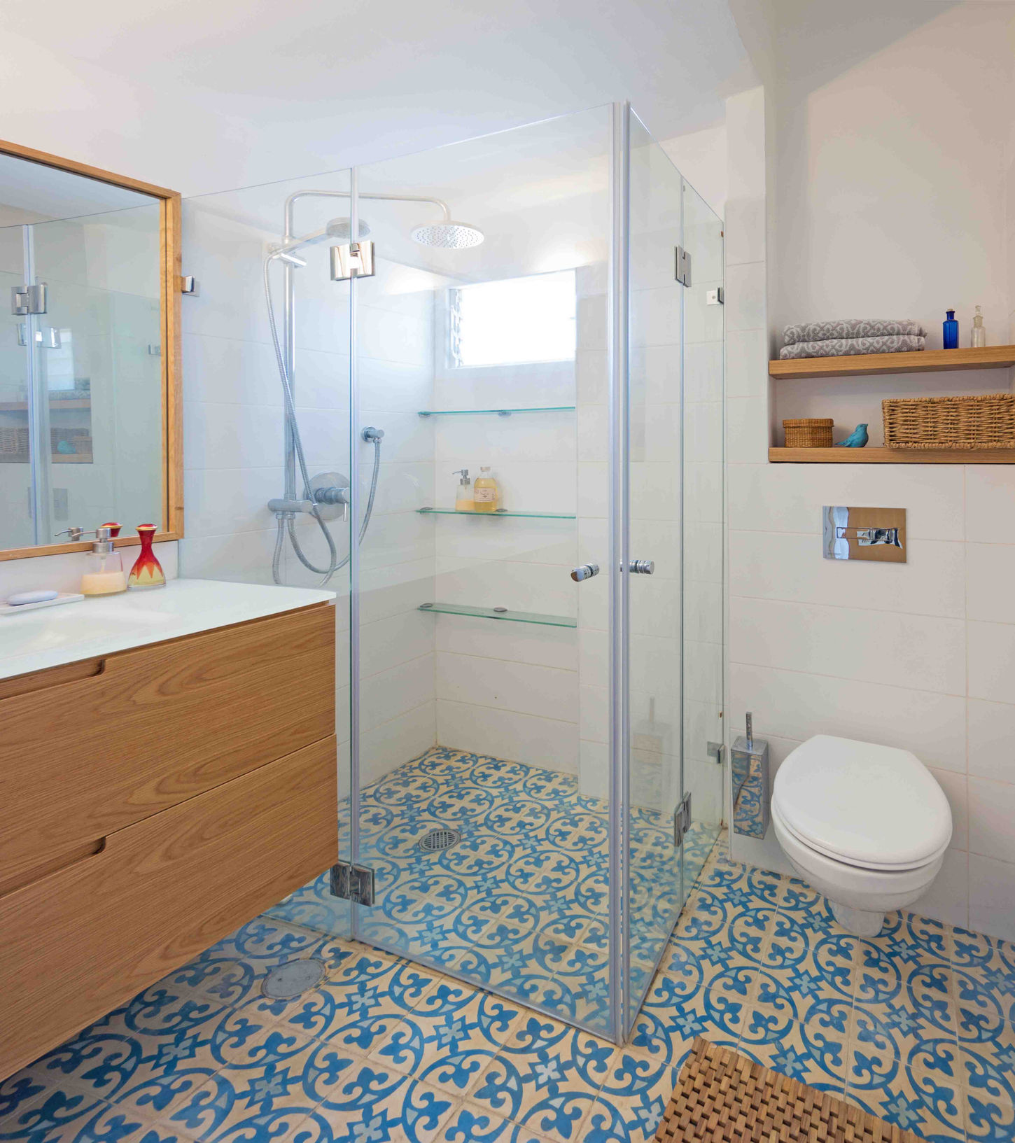 Renovation of existing duplex apartment in Herzeliya of 120 sqm completed in 2014. Original apartment located in a standard "train" building from the 1960's. Inspired by local eclectic design, the apartment incorporates a mixture of stone flooring with painted tiles, persian rugs, oak wood library and staircase, large iron blue windows overlooking green trees, a new veranda, intimate bathrooms and custom-made kitchen design. The result: eclectic airy and full of light.